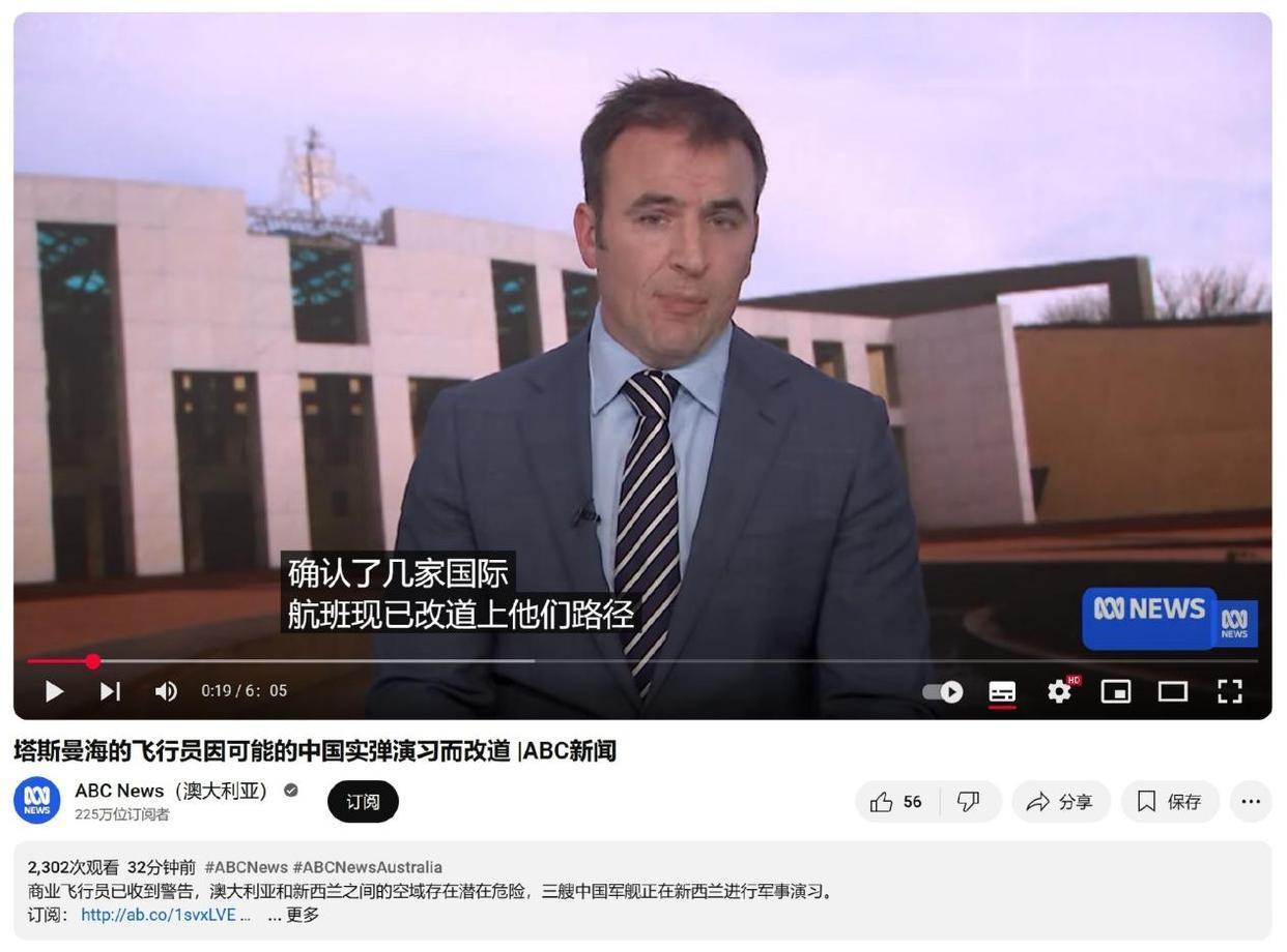 值得一提,据澳大利亚知名媒体ABC新闻报道,遵义舰编队还疑似在距离澳大利亚海岸线600公里的塔斯曼海深处组织了一场实弹训练,导致澳大利亚和新西兰之间的民航飞机都临时更改了飞行航线。